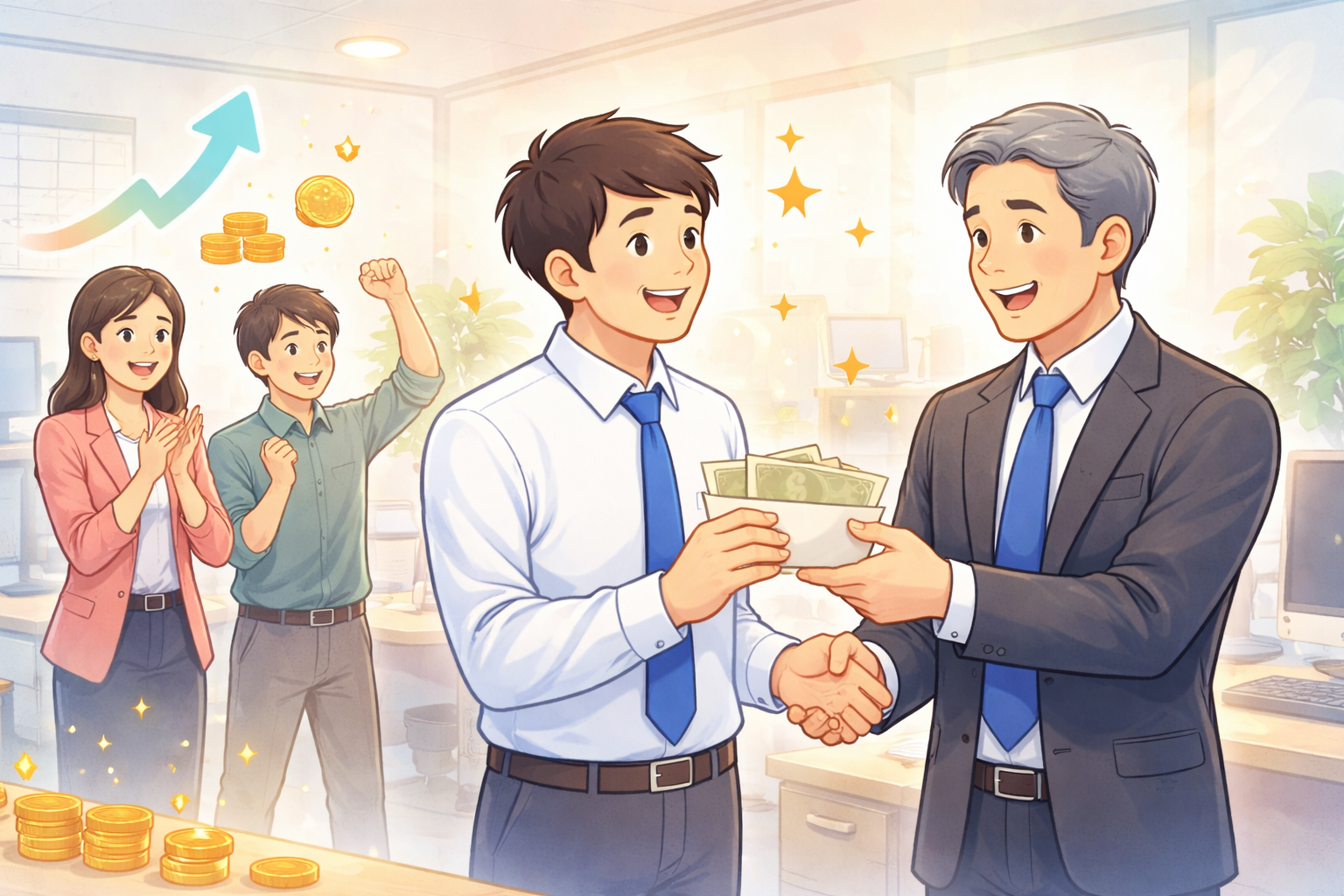 スタッフが自分の努力が直接報酬に結びつくと感じられることで、全体の生産性が向上します。結果として会社の利益も増加し、社員と会社双方にとってプラスの効果が生まれます。