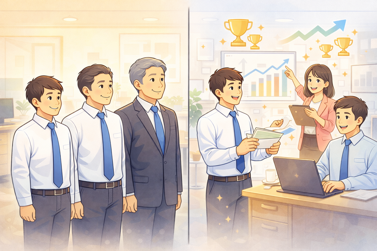 成果主義の最大の魅力は、その名の通り、あなたの成果が正当に評価され、直接的に報酬やポジションに反映されることです。具体的には、あなたの努力が報われ、収入が向上する可能性が高くなります。成果主義の職場環境では、自分のペースで成果を上げることで早期にキャリアアップを狙えます。